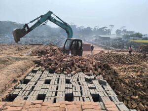 ইটভাটার চিমনি ভাঙার মুহূর্ত—এক প্রতীকী দৃশ্য
